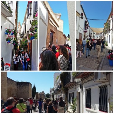 La última actividad de este encuentro, también de ocio, nos llevó a explorar la ciudad. La visita empieza en el Patio de los naranjos de la Mezquita. Dos guías acompañan a nuestros dos grupos que se encontraran en varias ocasiones, ¡y no en las calles más anchas! Nos cuentan maravillas de la ciudad de los Omeyas cuyas influencias por capas dejaron huellas en la distribución del casco antiguo, con la Mezquita como ejemplo mayor de estas imbricaciones (para ilustrar el webinario previo #AsetradArteCor). Descubrimos el porqué de callejuelas estrechas de la medina, nos asomamos al Guadalquivir, recorremos también la judería y, fuera de las murallas, paseamos por unas calles famosas por el concurso de patios celebrado cada mes de mayo. Como para quedar todos… ¡patiodifusos! La visita remata cerca del Alcázar donde algunos empiezan a despedirse.
