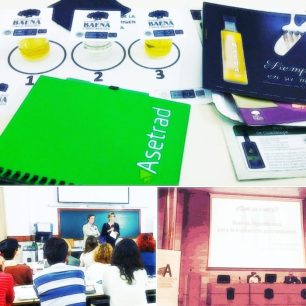 Para la cata de aceite, nos trasladamos a un aula-laboratorio. Nos recibe y nos guía un eminente representante de la economía y tradición local: José Manuel Bajo Prados, secretario general del Consejo Regulador de la Denominación de Origen Baena.